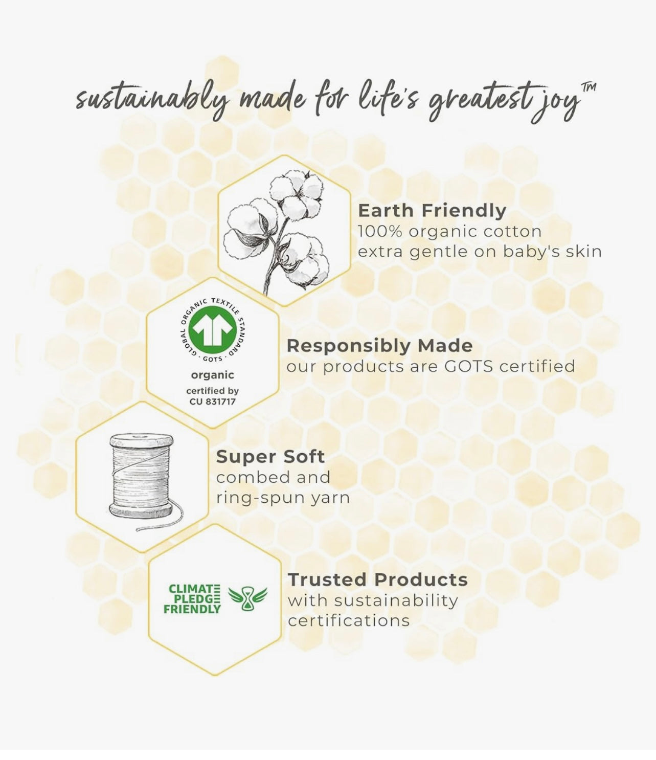 • Non-Slip Bee Grips: Each Burt's Bees Baby footie pajama has non-slip "bee grip" footies to provide stability for early movers, ensuring your little bee stays steady during playtime. Seasonally, we offer footless options for warm weather months.
